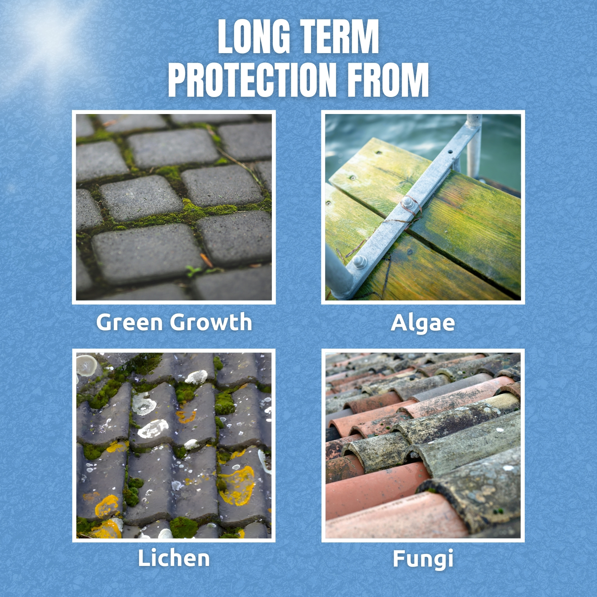 Organic Green Growth & Algae Remover - Treats up to 30m2. Kills & Prevents Re-Growth - Easy and Safe to Apply DRIVES- ROOFS- WALLS- TARMAC