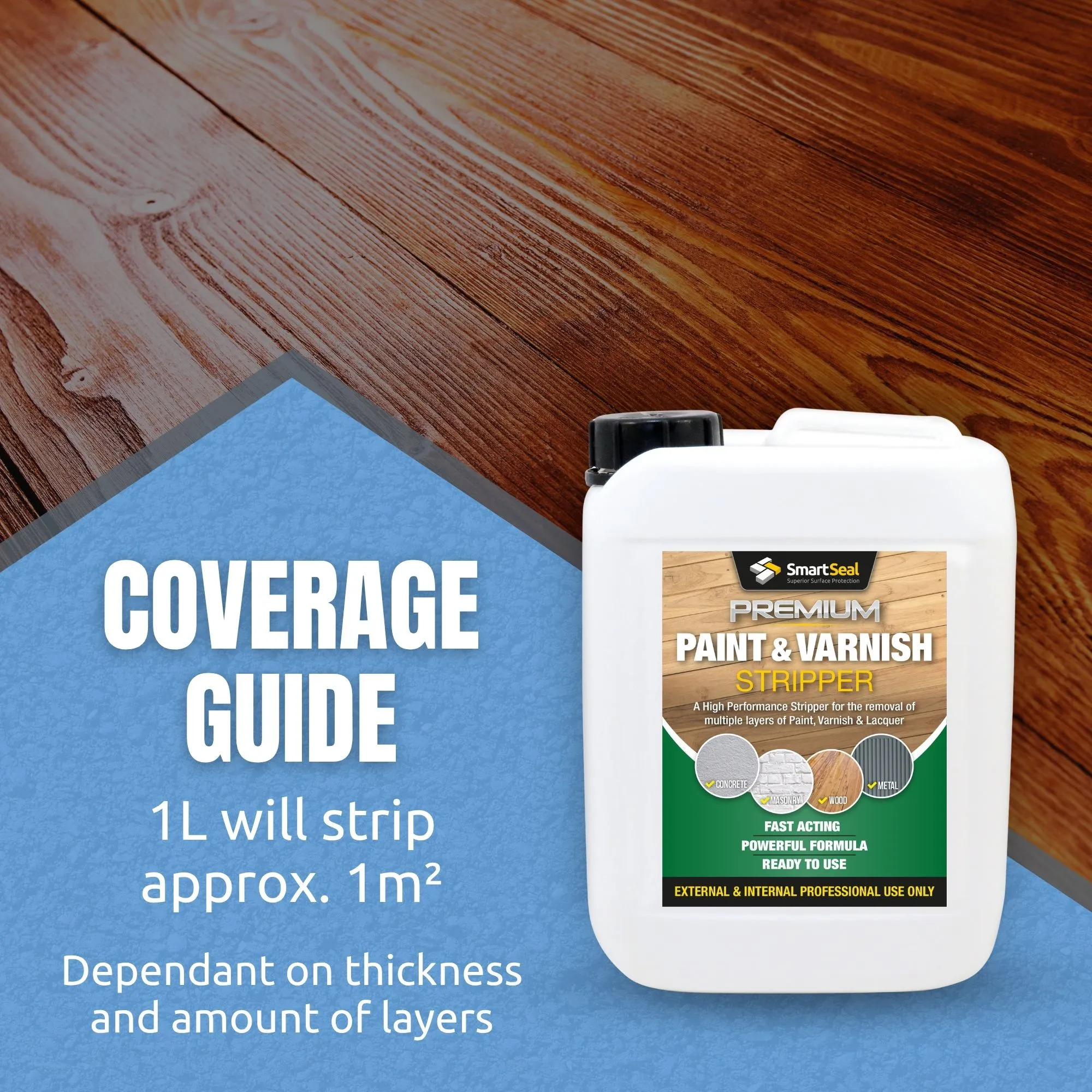 The Smartseal Premium Paint & Varnish Stripper is a Powerful, Ready to use, Fast Acting solution to your Paint & Varnish stripping needs.
